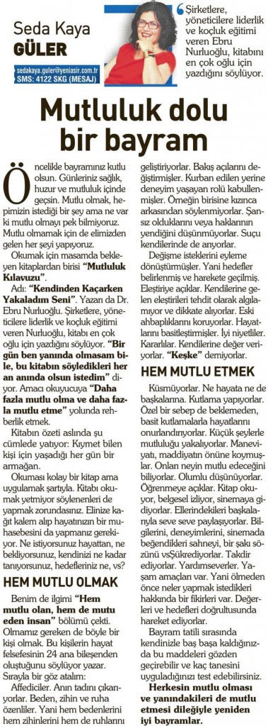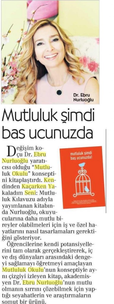 İŞ DÜNYASINDA BİR “VAHA” Yönetici Koçu Dr. Ebru Nurluoğlu, yaratıcısı olduğu “Mutluluk Okulu” konseptinin ardından; iş ve iletişim dünyası perspektifinde “verimlilik ve çalışan memnuniyeti “ çalışmalarına dair deneyimlerini kitaplaştırdı....